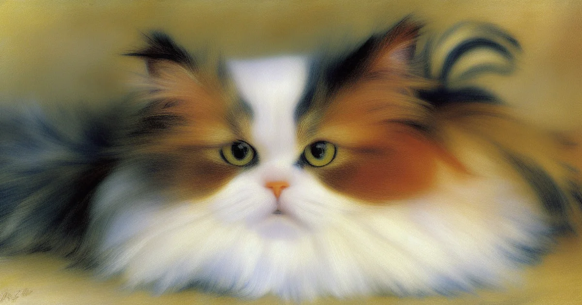 ペルシャ猫を Stable Diffusion WebUI で生成しました。1200 x 630 で生成すると2匹表示される場合が多いです。768 x 768 の学習モデルを使用しているので、広幅だと2匹になりやすいのでしょうか。