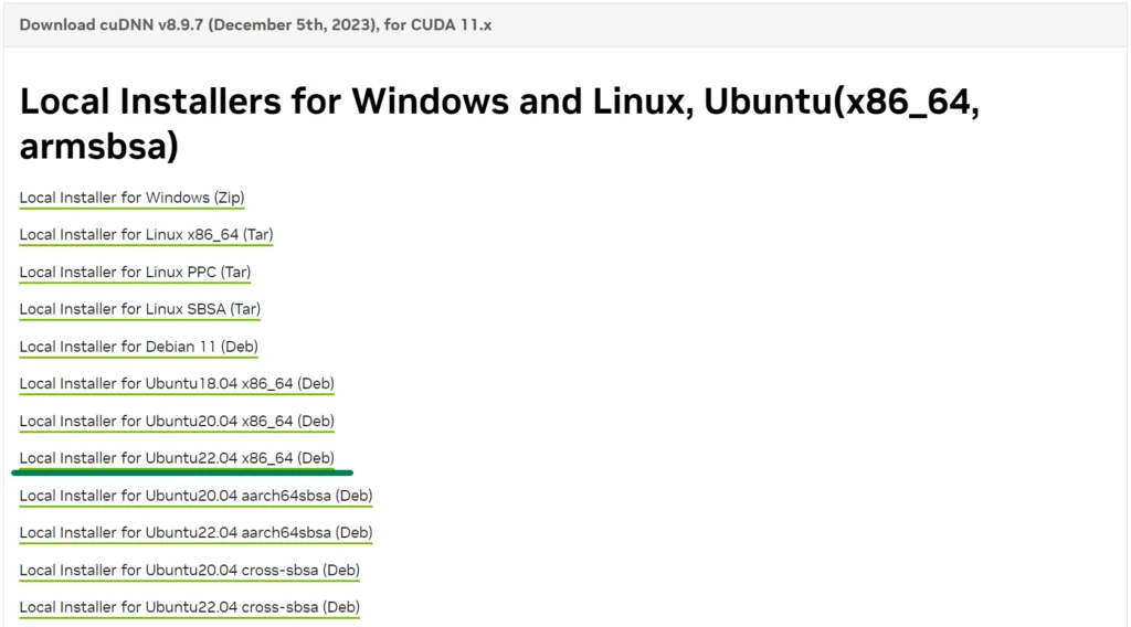 cudnn-local-repo-ubuntu2204-8.9.7.29_1.0-1_amd64.deb がダウンロードされます。