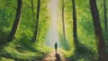 日差しの差す池を SDXL 1.0 & Stable Diffusion WebUI Forge で生成しました。新緑の中をゆっくり散歩したい気持ちです。
